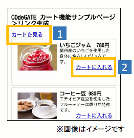 2カートへの商品投入ボタン商品ごとの「カートに入れる」ボタンです。