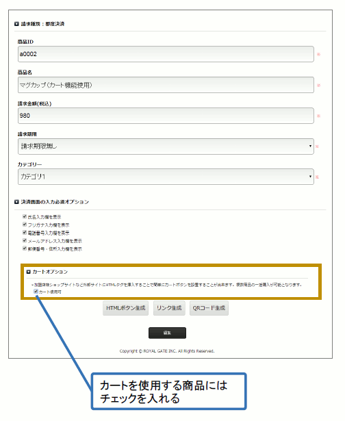 カート機能を使用する商品の設定