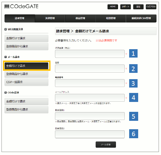メール請求>金額だけで請求(都度決済)