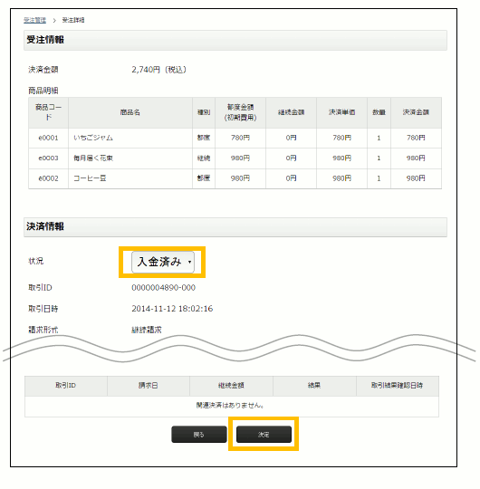 初期費用取消し(カート使用時) カートを使用した決済の初期費用を取消すには、該当する決済詳細画面にて、状況を修正します。「決済管理」の一覧より編集を行いたいデータの「取引ID」を選択して編集画面を開いてください。 ※なお、複数購入した商品のうち、一部の初期費用のみ取消しすることは、こちらの管理画面からは行えません。その場合には、個別に返金対応を行ってください。 関連記事 初期費の一部キャンセル(カート使用時) 継続状態の変更(一時停止・再開・停止)(カート使用時) 決済詳細画面の見かた(カート使用) 決済データの編集>取消・ステータス変更 カートボタンの設置方法>QRコード カートボタンの設置方法>リンク カートボタンの設置方法>HTMLボタン カート機能を使用する商品の設定 【概要】カート機能について 請求方法の種類