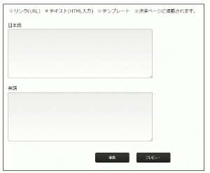 予め用意された項目に対して内容を入力する方法です。各項目の内容を記入して、下にある「プレビュー」をクリックすると別ウィンドウで表示を確認することが可能です。内容を保存する場合には、下にある「編集」ボタンをクリックしてください。